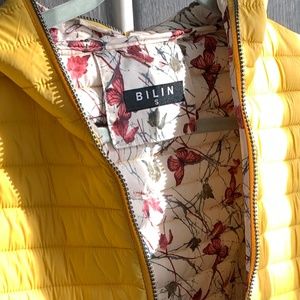 Super cute wind and water repellent bright yellow Jacket. And because 2 pockets are not enough, on the inside it has extra pockets.