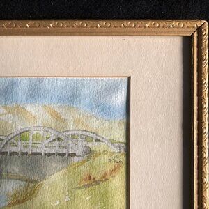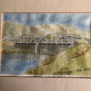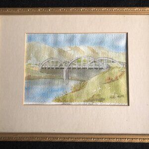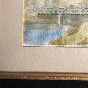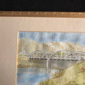Water color painting on paper wall decor 12.5" x 9.5" frame bridge river signed