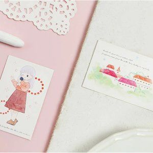 Write loving messages or decorate your study and work space with this kawaii set of girl greeting cards.