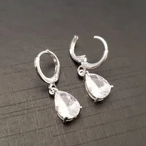 Beautiful Whute gold plated waterdrop dangle earrings with cuff hoops. Brand new, never worn. In original packaging.