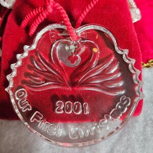 Like New!- "Our First Christmas" crystal ornament in original box with sticker and leaflet. Product of Ireland. Description from their official website:
