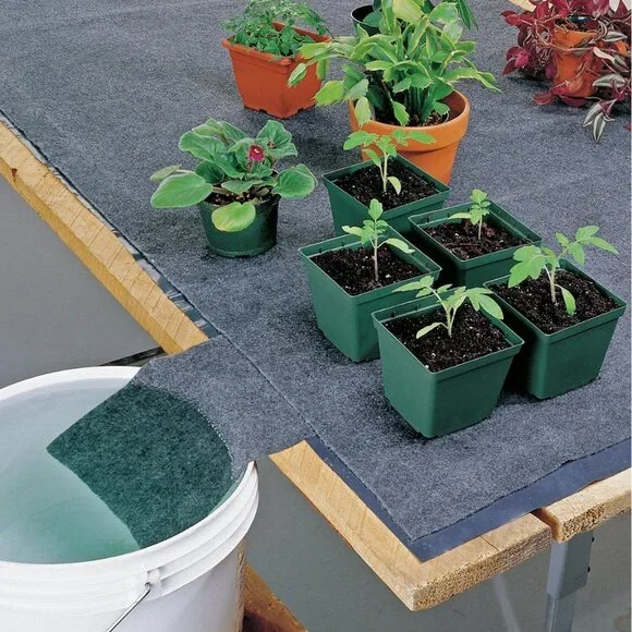 Often called a capillary mat, this item is a common sight in large greenhouses where automatic watering is a necessity.