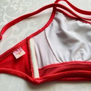 Say goodbye to tan lines and hello to this gorgeous twist bikini top. Full coverage bikini top wraps at the center front like a surplice-style top and features cris cross adjustable straps and underbust band for support and shaping.