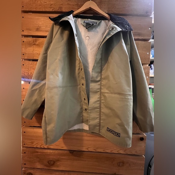 Fully waterproof shell. High quality !! No tips or tears . Corduroy lined collar . Olive green jacket size small