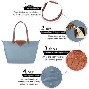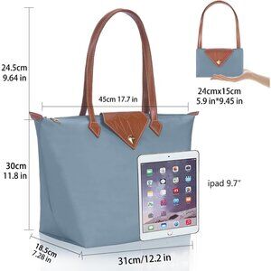 Waterproof Nylon Tote Bag Women Large Foldable Blue Shoulder Bag for Travel Use