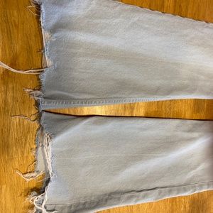 The Water Saving Collection is a collection of 90s and Y2K-inspired denim garments made from more sustainable materials in a water-saving manufacturing process. Jeans in thick denim made from recycled cotton. Low waist, zip fly with button, and slim legs with flared hems. Front pockets, a coin pocket, and back pockets.