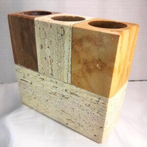 Waterstone Mexican Stone Marble Bud Vase Pen Holder Toothbrush Cream Tan Tones