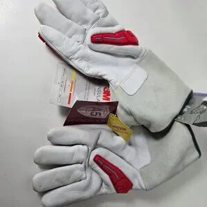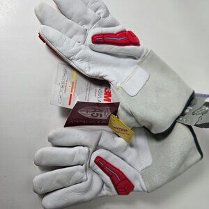 New with tags, never worn. There is some dirt down one cuff. They must have been sitting against something dirty. Impact protection on backs of hands and fingers. Size M.