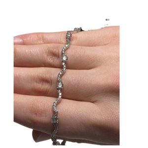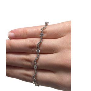 Gorgeous never worn CZ wavy bracelet in a 925 Sterling Silver setting. It is about 7" long with a lobster clasp. Pristine condition.