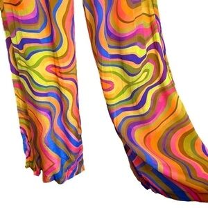 Wavy Psychedelic Rainbow Silk Crepe Wide Leg Resort Pants - O/S 🌈