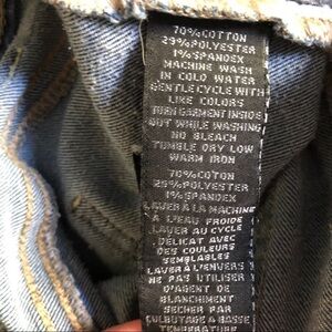 These jeans are in great condition and have all of the distressed areas in the right sections. Great quality and soft to the touch. Size 9. Approximate measurements eight and half front rise, 14 inch back rise and a 29 inch inseam. Cotton polyester blend with 1% spandex to make these jeans stretchy.