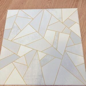 Small white and grey canvas with gold geometric design. Brand new on wrapped canvas. 12 x 12 inches or 30 x 30 cm. Paid around $100 for this piece originally, asking for $25. Originally bought for my office but have no room on the walls for it.