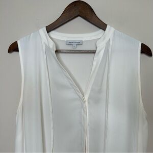 Wayne Cooper Sheer V Neck Sleeveless Blouse Hidden Buttons White Size 12