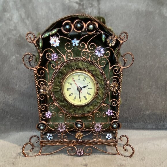 Wayne M. Kleski Viintage Victorian Working Clock Velvet, Metal, Floral Embellishment