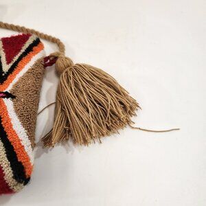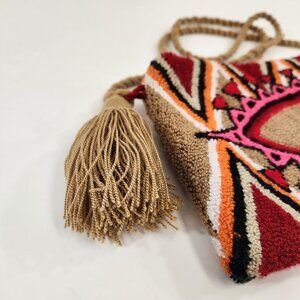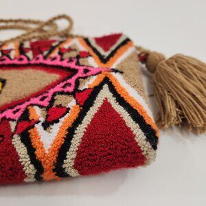Wayuu Third Eye Clutch Bag Purse Tassels Deep Red Beige Handmade Colombia