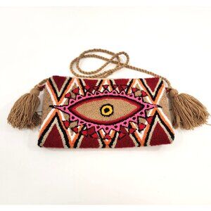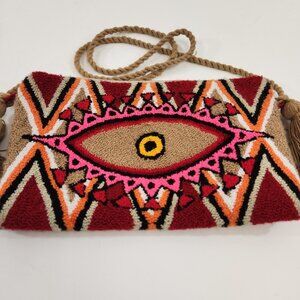 Wayuu third eye clutch purse, made in Colombia. Excellent used condition, clean. It has a cute brooch attached to it, you could remove if you want. Approx 6.5" x 10.5". Strap drop 19".