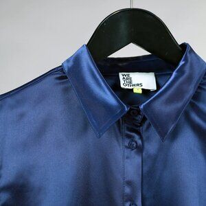 This rich midnight coloured Carmen shirt by We Are The Others is crafted for a lasting, polished look. Featuring our core Satin shirt fit, self-covered button detail at center front & cuff openings, and a shaped hem, this shirt guarantees a smart, sophisticated style. Embodying modern and timeless elements, this design offers an updated take on a classic look.