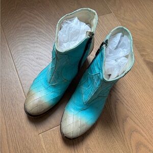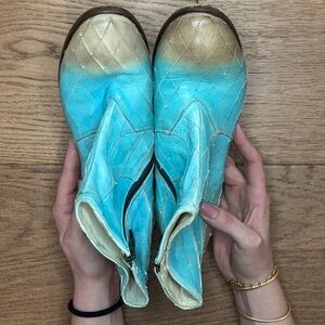 We Are…The Original Western Bootie - Taupe & Turquoise Leather - Size 39 - EUC