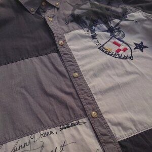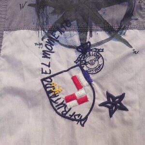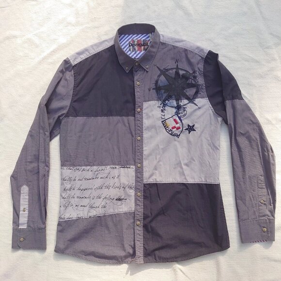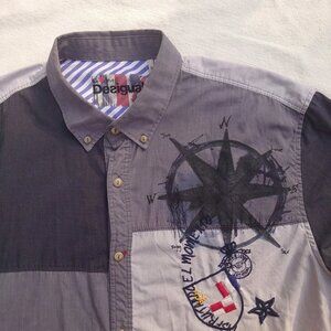 We Love Desigual Long Sleeve Grey Shirt Patchwork Compass XL Embroidery Funky