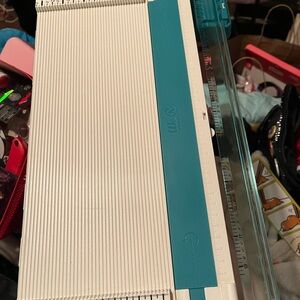 This is a We R Memory Keepers Trim and Score Board. It's designed for paper crafting and scrapbooking. It has scoring and cutting guides built-in.