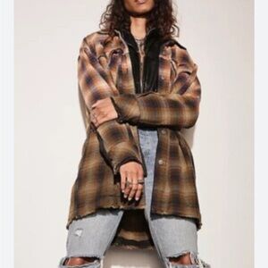 A major must-have, this effortless shirt jacket from our We The Free collection is featured in a contrast plaid print and button-front style in an oversized, slouchy silhouette.