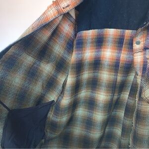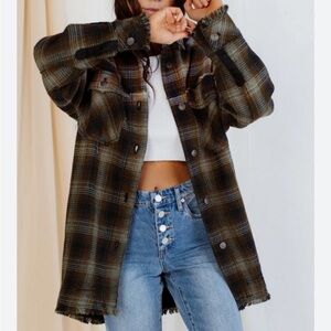 Stylish plaid jacket. Perfect for layering. Casual and trendy.