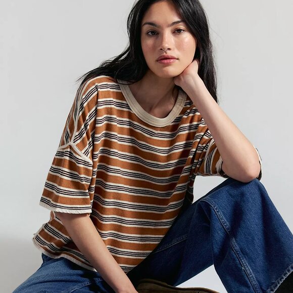 Sporty, retro, comfy–we’re bringing all of our favorite vibes into one tee with this staple option from We The Free, featured in a cropped, boxy fit with a fun striped print and extra wide short sleeves. Color is Almond Combo. Size XS.