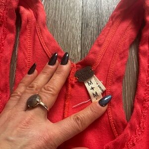We The Free Coral Henley Ribbed Racerback Tank