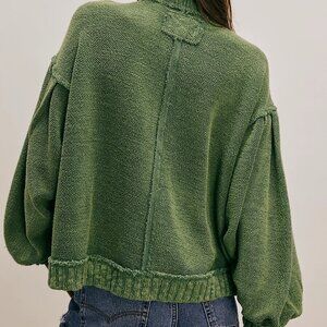 Cozy and classic, this cardi from our We The Free collection features a soft terry fabrication and slouchy silhouette with billowy drop-shoulder sleeves and front patch-pockets. Color is Frosty Spruce. Size S.