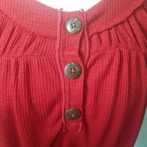 We The Free Free People Must Have Henley Thermal Red Long Sleeved Top