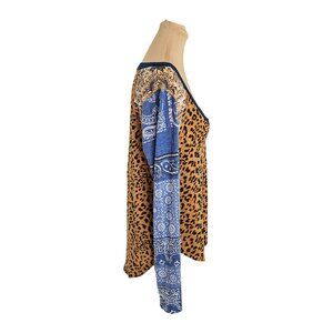 We The Free Leopard Print Unique Busy Statement Long Sleeve Blouse Sz M