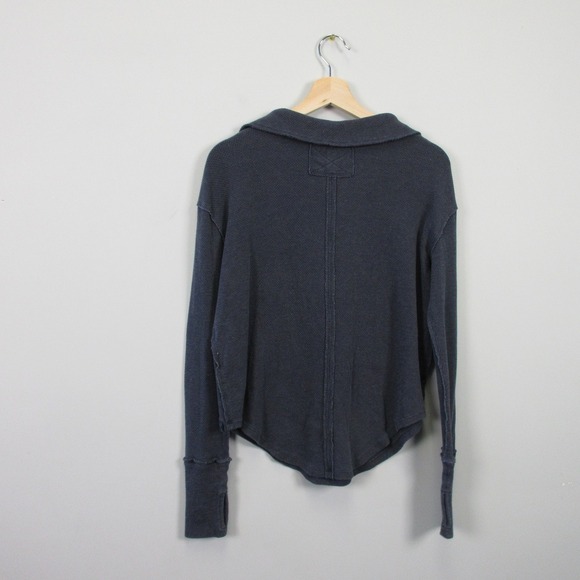 We The Free People Anakin Thermal Top Women XS Blue Boho Lounge Collared 342