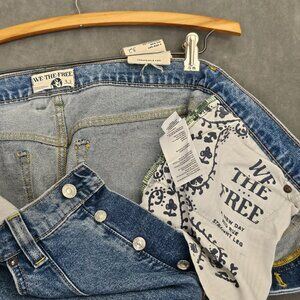 We The Free People Women 34 Distressed MidRise Button Fly Straight Jeans A3-37
