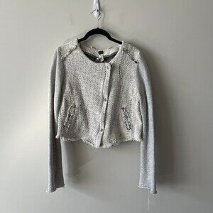 Free People We The Free Tattered Tweed Button Front Cropped Raw Hem Moto Jacket Gray Cream 8 : Used and in good used condition