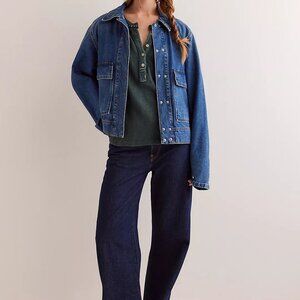 The true definition of an effortless essential, this cool and classic henley top is featured in a slouchy, relaxed fit with defined stitching and exaggerated seaming for a true lived-in look. Color is called Topiary. Size L. New 2025 piece!
