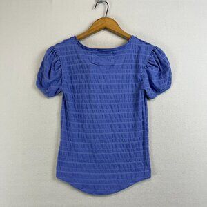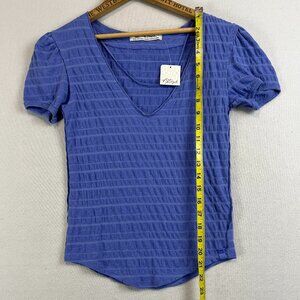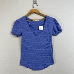 We The Free for Free People Purple V Neck Short Puff Sleeve Textured Tee Top XS