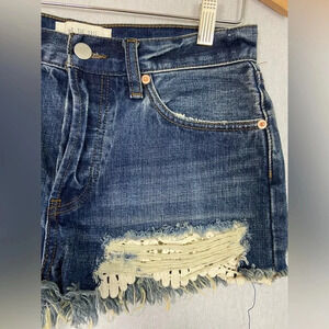 We the Free cut off frayed distressed crochet jean denim shorts Sz 27