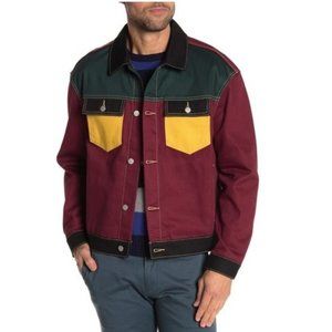Innovative colorblocking offers a retro-inspired look into a traditional denim jacket.