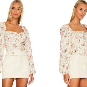 WeWoreWhat Ruched Dainty Floral Top Bustier Pouf Sleeves Cream Pink NEW Large