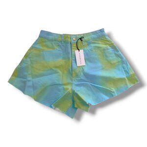 WeWoreWhat Twill Flare Bell Tie Dye Frayed Hem High Rise Denim Shorts