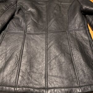 Beautiful jacket😍 Very thick shearling. 2 inset pockets inline with seam for a sleek look. 1 small blemish as per last picture. (not a hole)
