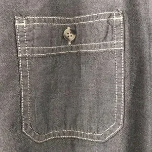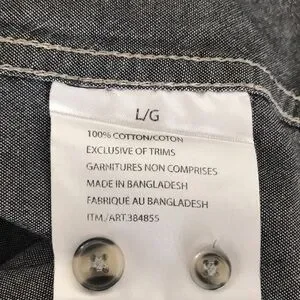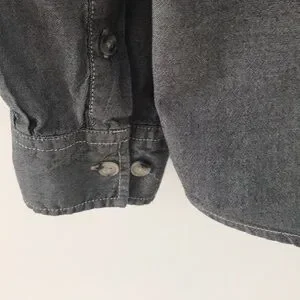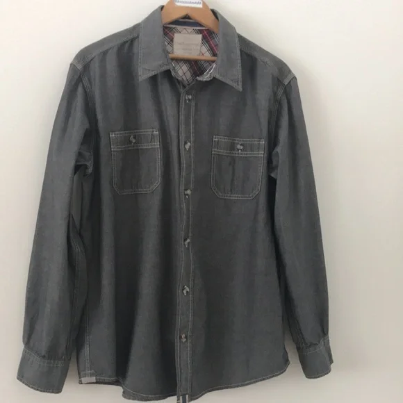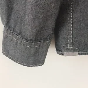 Grey cotton button down- has detailing on side seams and front seam . Excellent condition no rips no stains. Size large - measurements approximately are 27 inches shoulder to hem- armpit to armpit is 24 inches