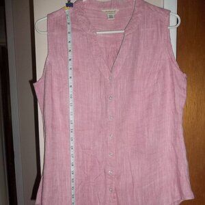 Excellent condition linen blend button down sleeveless top in a size M. Muted pink, perfect for spring and summer wear. Size tag picture best represents the actual pink color.