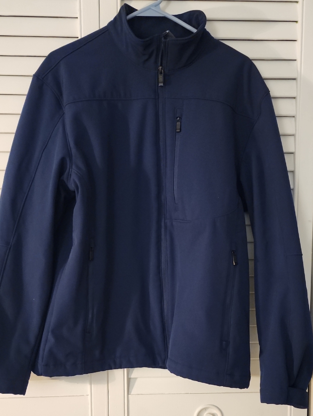 Lightweight performance softshell with full front zip. Zippered chest and hand pockets secure items. Stand collar blocks wind. Streamlined fit for layering and daily use.