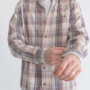 Elevate your wardrobe with the Weatherproof Purple and Cream Checker Print Button-Up Dress Shirt in size Medium. Crafted with sophisticated style and modern flair, this shirt offers a versatile option for both casual and formal occasions.