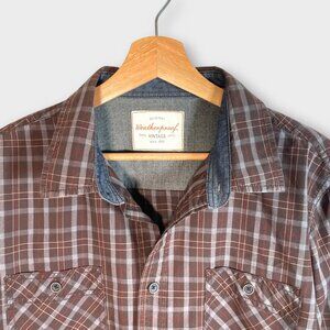 Weatherproof Vintage Button Down Shirt Mens LARGE Brown Plaid Hiking Casual