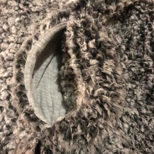 There is a "flattening" of the fur on the front. Not sure if it is part of the design or an issue with the sweater. See last photo.