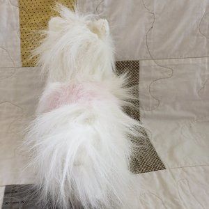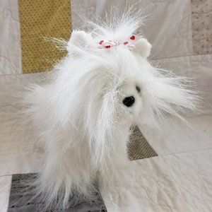 Webkinz Yorkie with no code, it is white with pink on its back and a white bow with red hearts. In very good used condition, was released in August 2006 and is not retired.