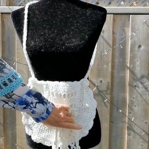 Large, White, Vegan, Eco friendly, Crochet Boho Bag in 100% cotton by Claudia's Crochet Creations.