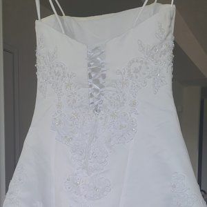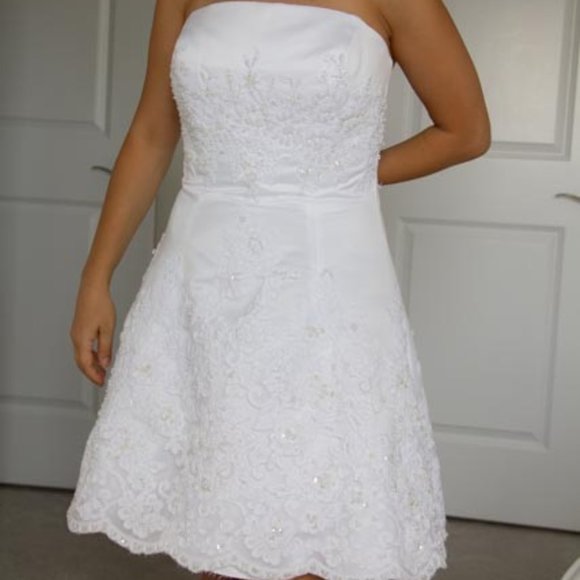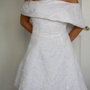 Beautiful custom design dress. Perfect for reception or after wedding party dress as well. Also, t is very comfortable short wedding dress for photo shoots. You can wear it strapless or with a gorgeous adjustable sleeve detail. You can try this. Kitchener, On.
